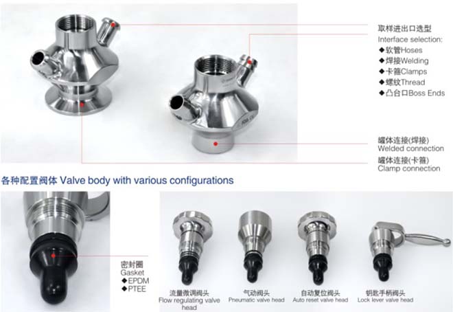 全新設(shè)計(jì)理念無菌取樣閥,滿足更高要求,美國3-A-64-00衛(wèi)生認(rèn)證,支持自動復(fù)位,鑰匙手柄,微調(diào)手輪,氣動,它們之前都可以相互更換。